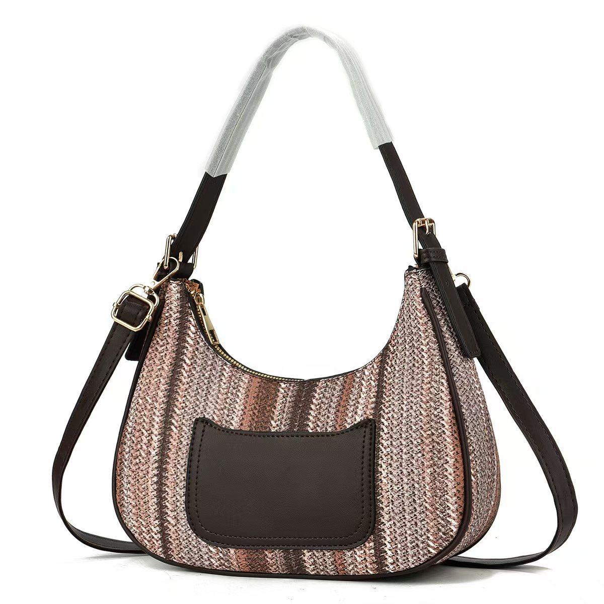 Женская новая модная сумка-хобо с тканой текстурой, премиальная, на плечо, через плечо - мягкая, прочная, для通勤, большая вместимость, ручная сумка кофейный