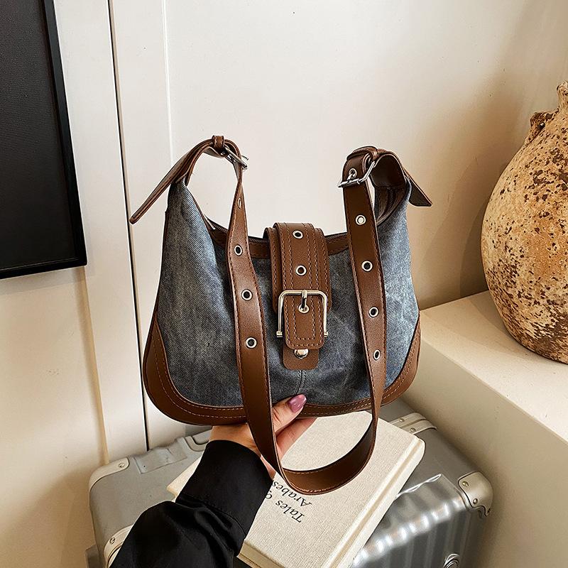 Женская новая сумка через плечо большой вместимости 2025 ретро матовая сумка-мессенджер сумка-пельмень подмышку высокая ценность синий