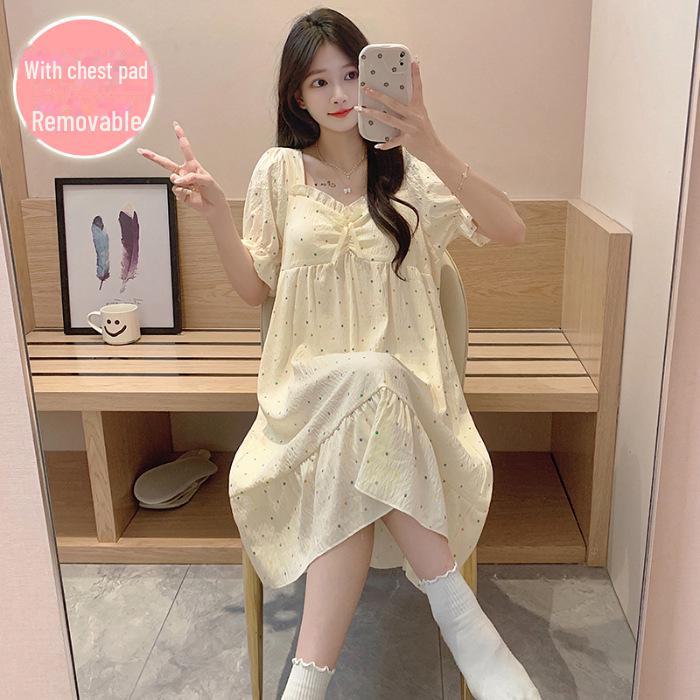 Женская ночная рубашка больших размеров из хлопка Tencel с нагрудными подушечками - короткий рукав, средняя длина, узор в виде пузырьков M