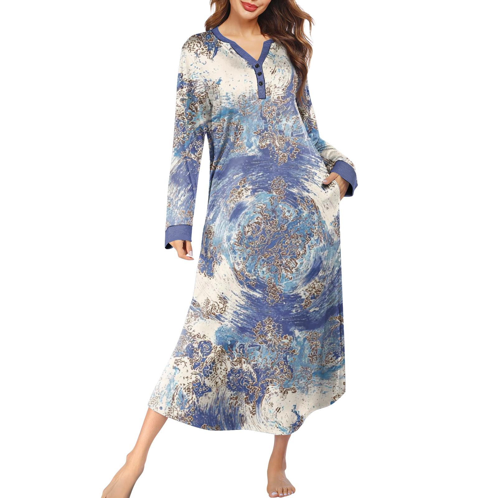 Женская ночная сорочка длинная домашняя одежда с V-образным вырезом и карманами S синий
