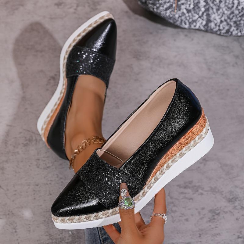 Женская обувь больших размеров весна и осень новая остроносая каблук платформа из пеньковой веревки модные одинарные туфли женские туфли-лодочки 43 чёрный