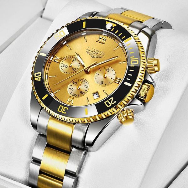 wristwatches relogio masculino 2021 lige men watch business waterproof date watches fashion multifunction stainless steel golden quartz, Slivery;brown