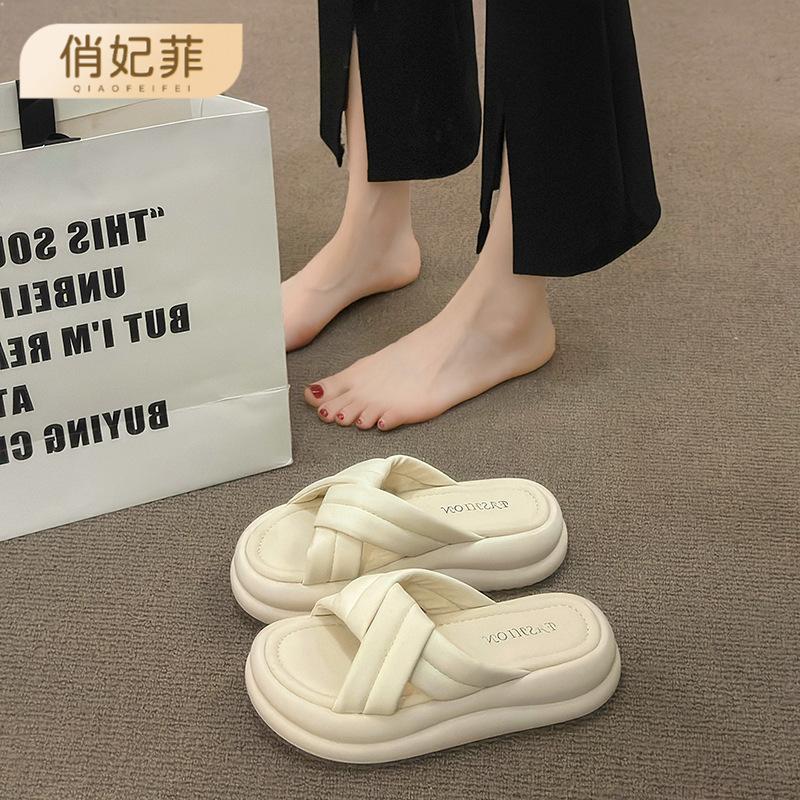 Женская обувь на платформе, новые летние пляжные шлепанцы на перекрестном ремешке, модные, с мягкой подошвой, женские, нескользящие 40 бежевый