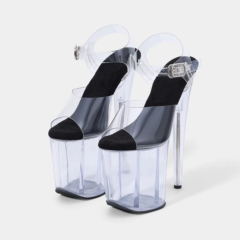 Женская обувь со стразами 20 см, противоскользящая стелька, обувь для танцев на пилоне, прозрачные сандалии на тонком каблуке с ремешком на щиколотке, непромокаемый каблук на платформе