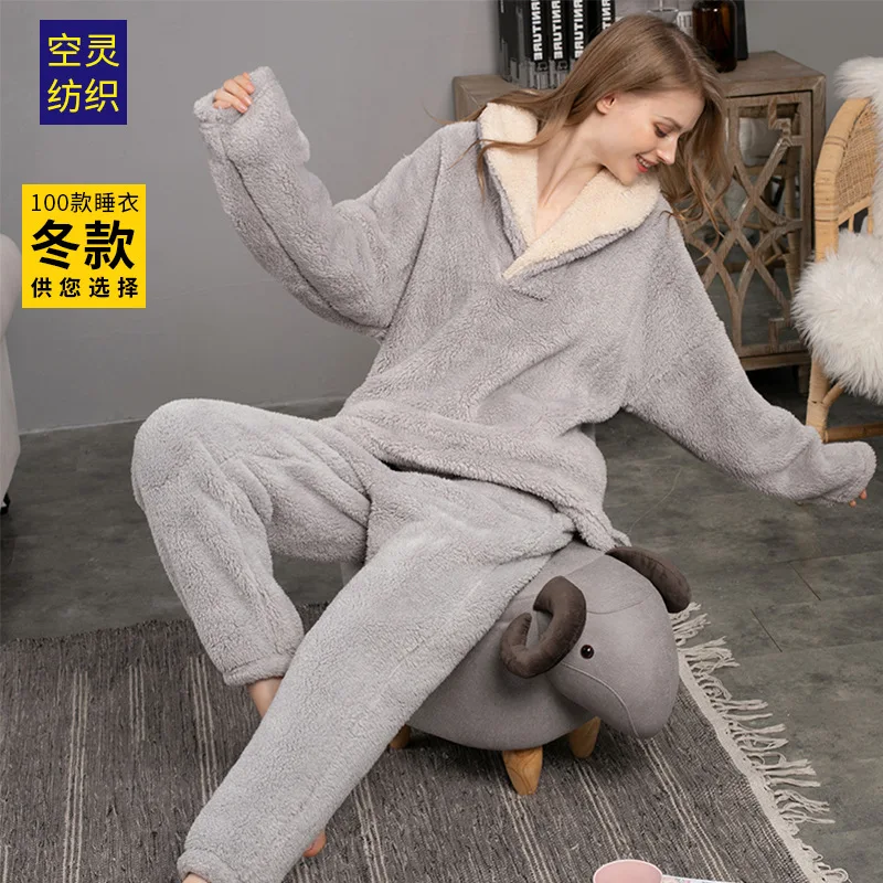 Женская одежда для сна, пижамы из кораллового флиса, домашняя одежда, утолщенная осенне-зимняя свободная верхняя одежда больших размеров для девочек, теплая женская одежда для дома