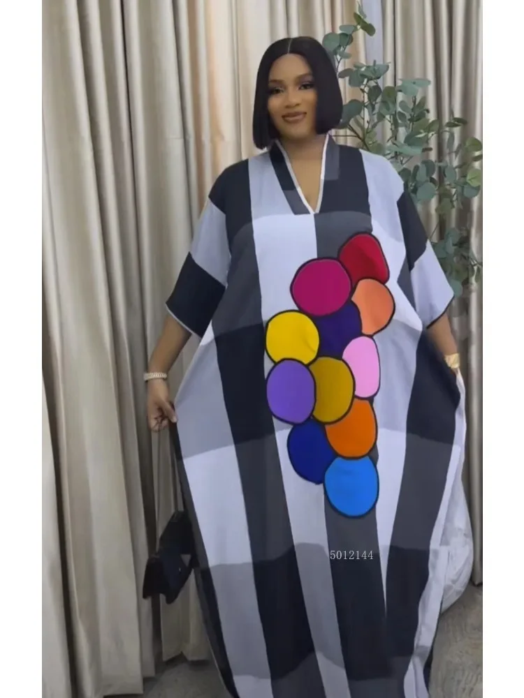 Женская одежда, осень 2021, новый стиль, милое и свежее полосатое платье с v-образным вырезом и рукавами «летучая мышь», свободное платье большого размера, длинное платье