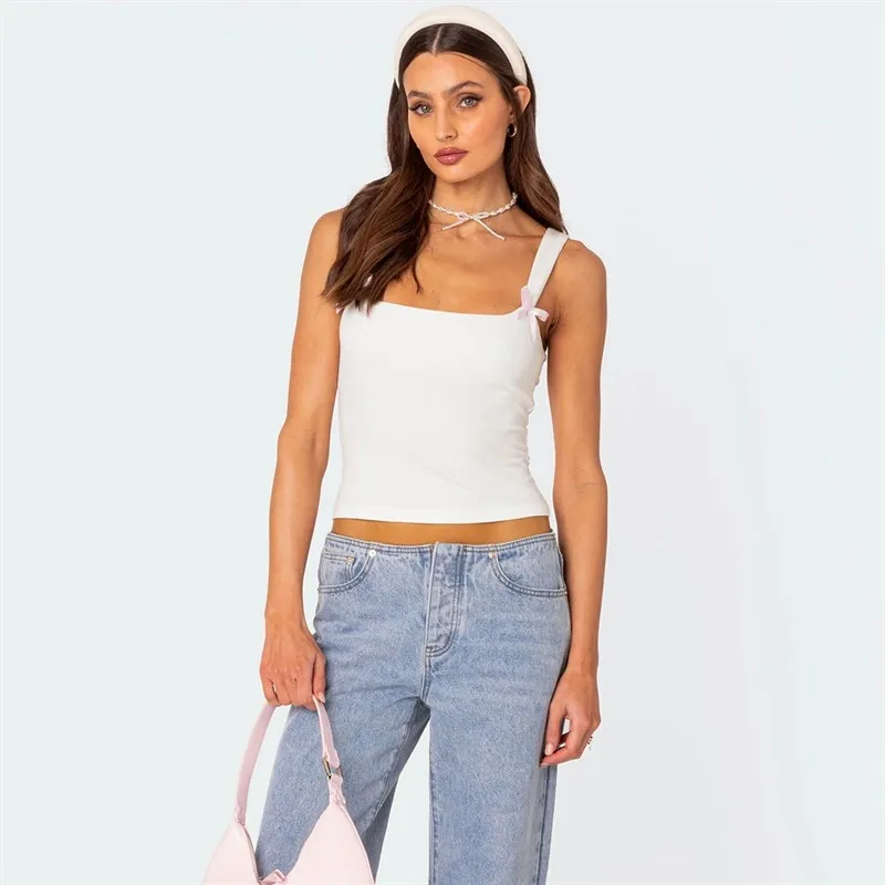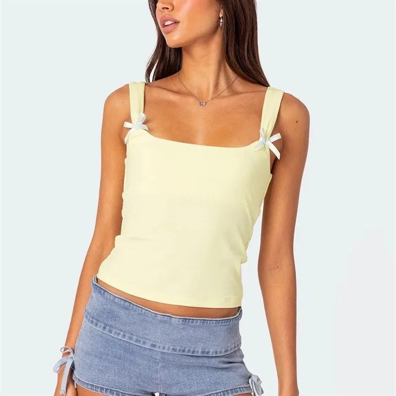Женская одежда Y2k, топ с бантом, майка, пикантная популярная Пряная уличная одежда для девушек, мини-жилет, летняя модная Облегающая майка, облегающий Топ, 2024