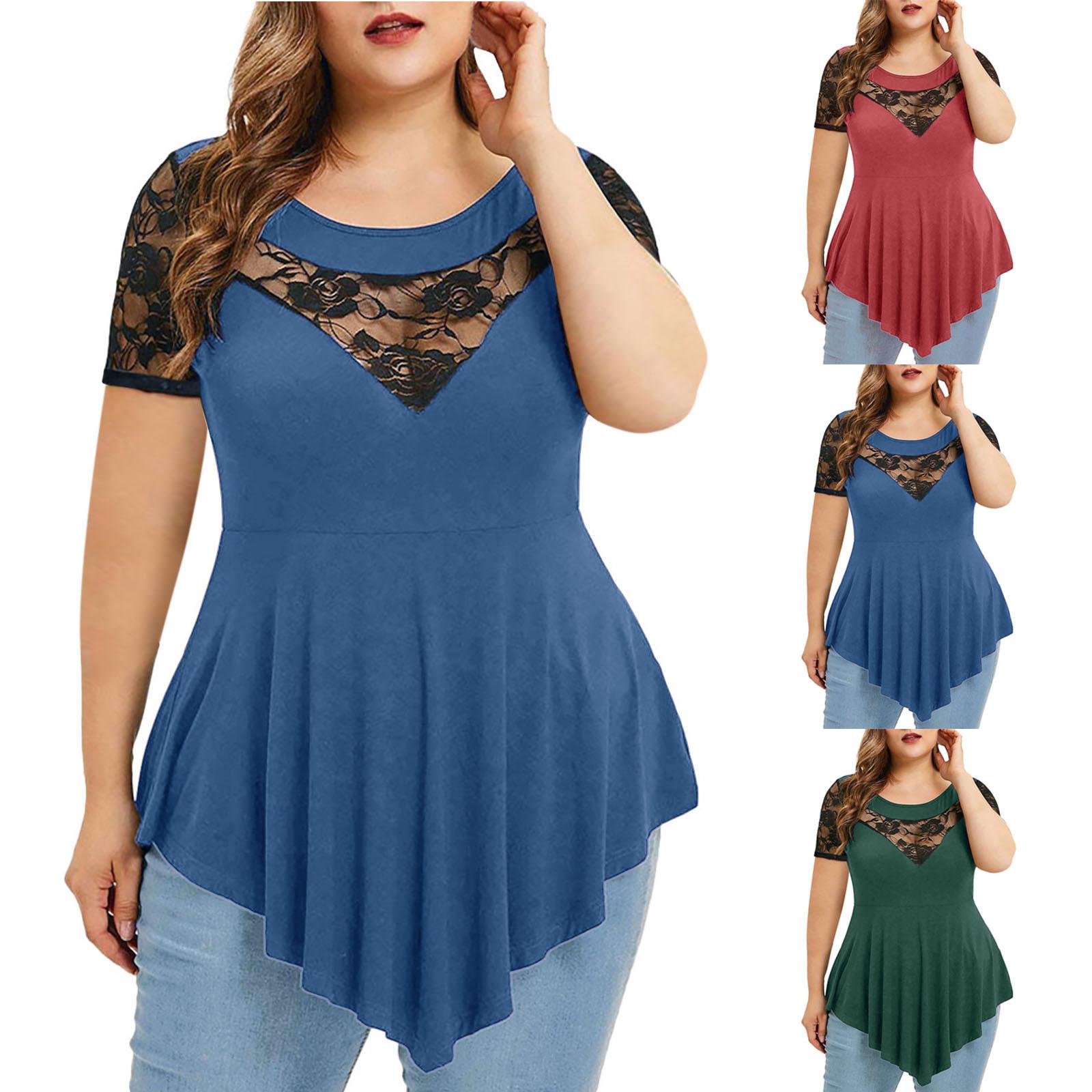 Женская однотонная кружевная асимметричная блузка размера три четверти размера плюс