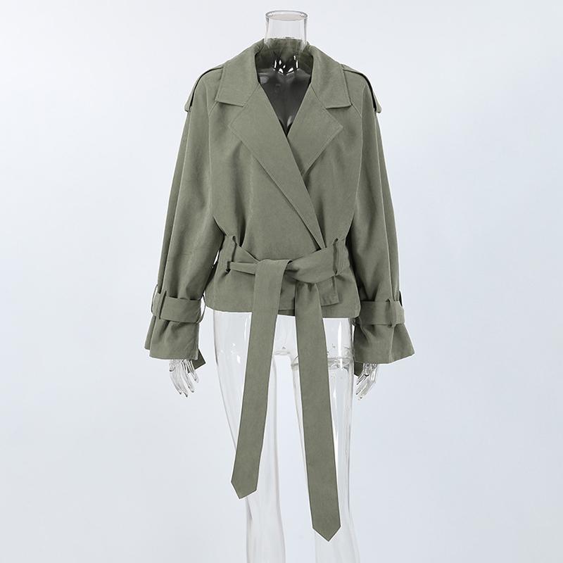 Женская однотонная куртка с длинным рукавом на шнуровке, модное однотонное пальто-тренч короткой длины с лацканами и поясом для осени и на каждый день, уличная одежда L