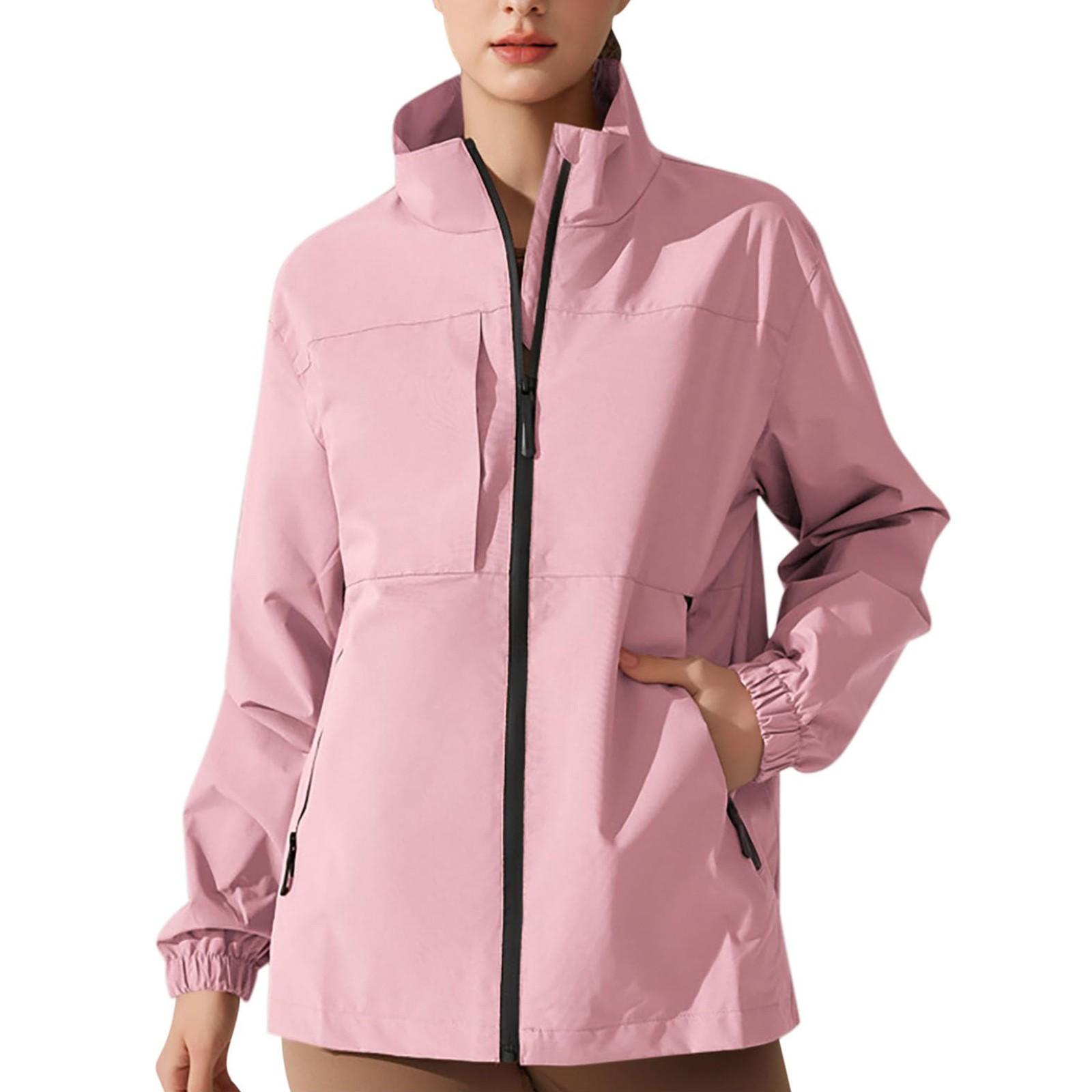 Женская однотонная полосатая дождевик на открытом воздухе плюс водонепроницаемый плащ с капюшоном ветрозащитный L розовый