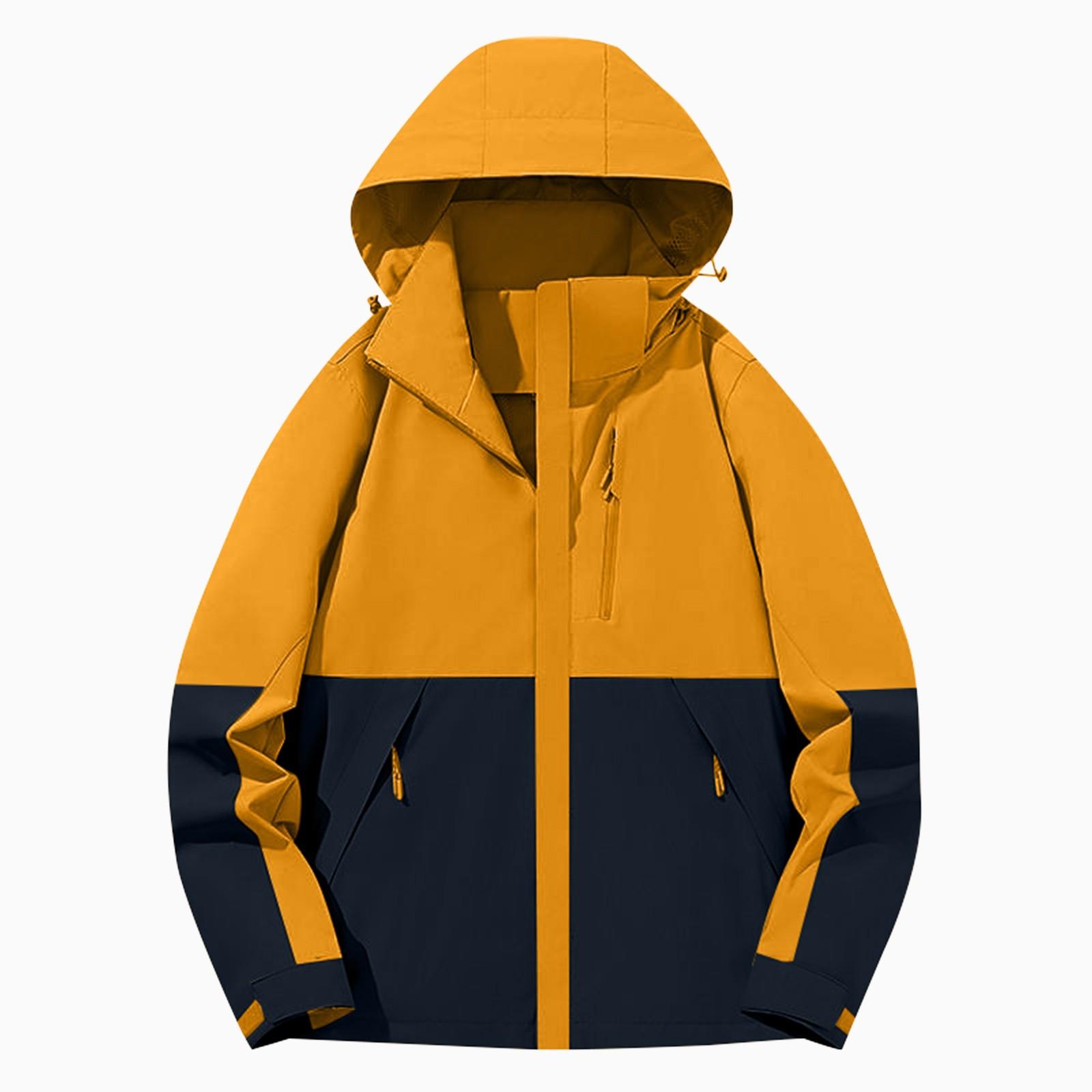 Женская однотонная полосатая дождевик на открытом воздухе плюс водонепроницаемый плащ с капюшоном ветрозащитный XL шафрановый