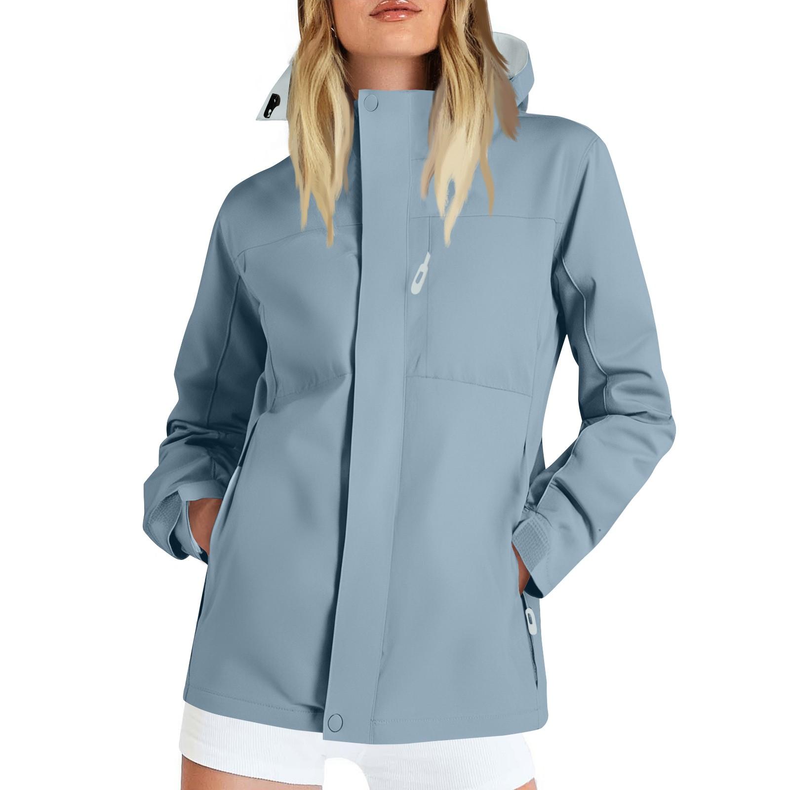 Женская однотонная полосатая дождевик на открытом воздухе плюс водонепроницаемый плащ с капюшоном ветрозащитный XXL небесно-голубой