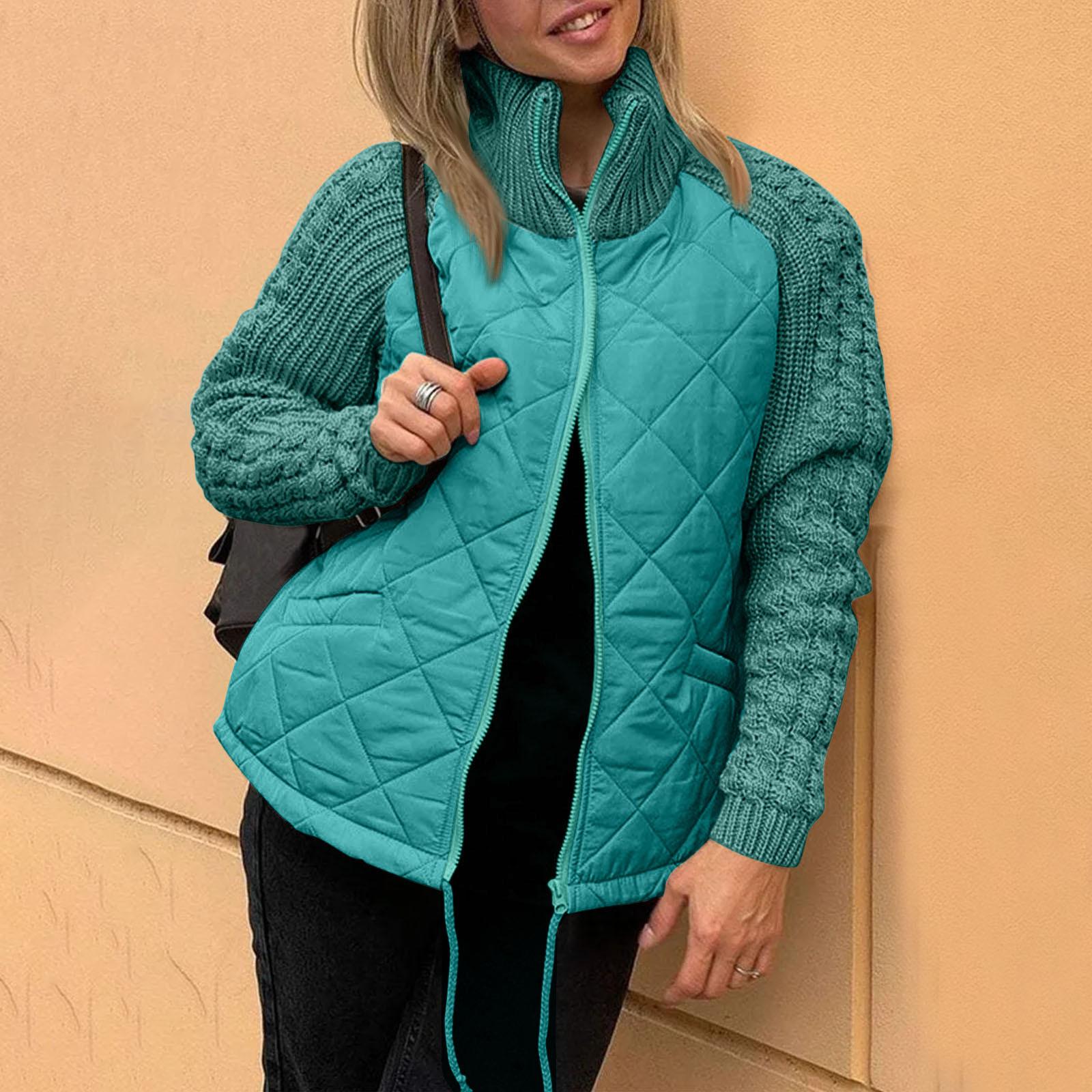 Женская однотонная трикотажная стеганая куртка в стиле пэчворк, повседневная легкая куртка с воротником-стойкой и длинным рукавом на молнии, утепленная верхняя одежда, пальто XXXL