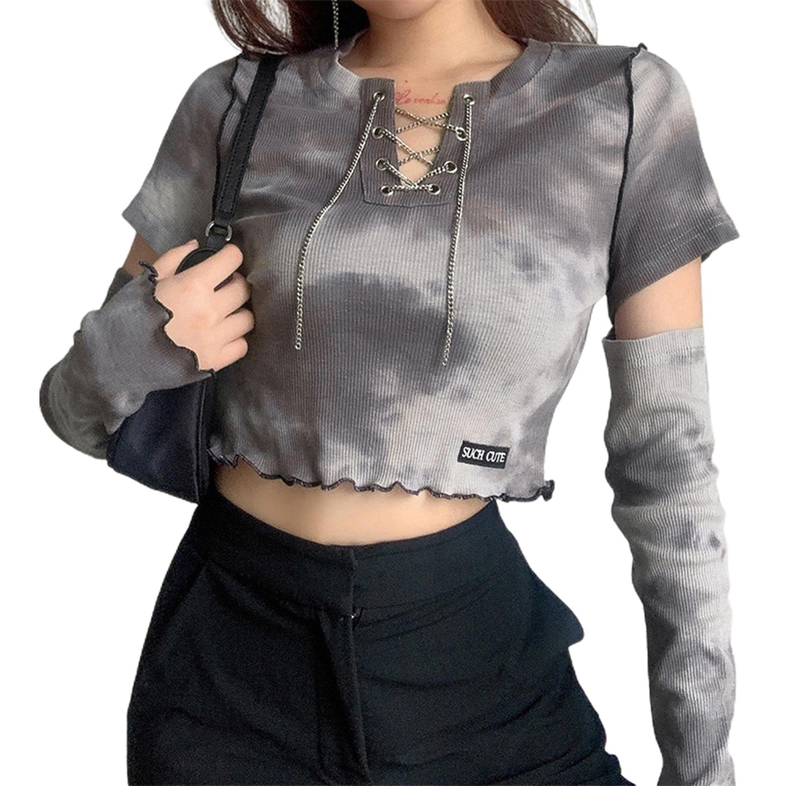 Женская осенне-весенняя повседневная футболка с длинными рукавами и строчкой, модная цепочка с v-образным вырезом и открытым пупком, шикарные уличные топы