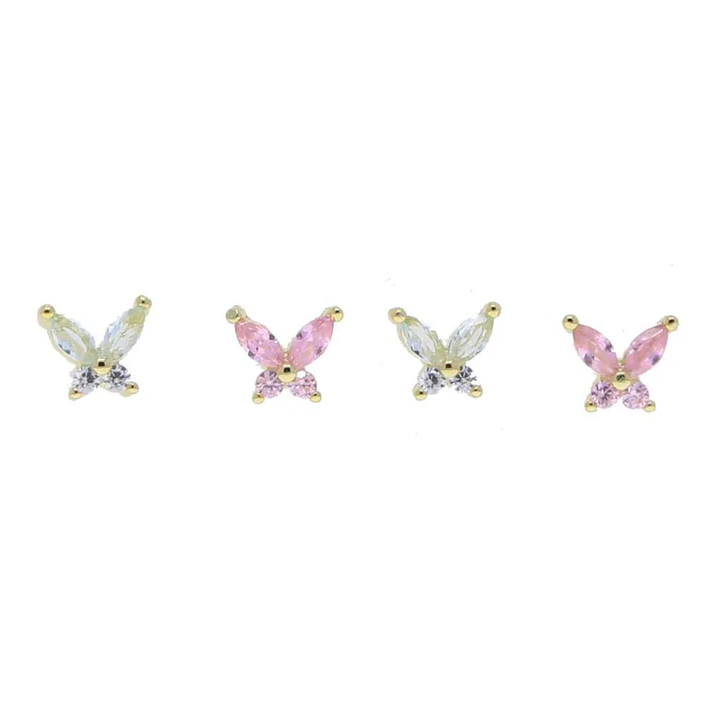 minimalist 925 sterling silver mini small butterfly earring colorful bling cz paved cute lovely butterfly Earrings Stud Piercing