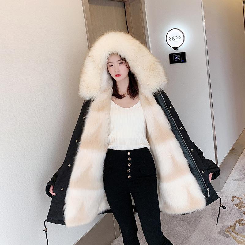 Женская осенне-зимняя куртка средней длины с имитацией меха, однотонное пальто с капюшоном