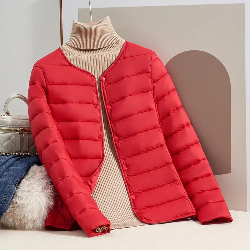 Женская осенне-зимняя легкая хлопковая куртка с короткими секциями, однотонная, с круглым вырезом и V-образным вырезом, куртка Two Wear 2XL красный