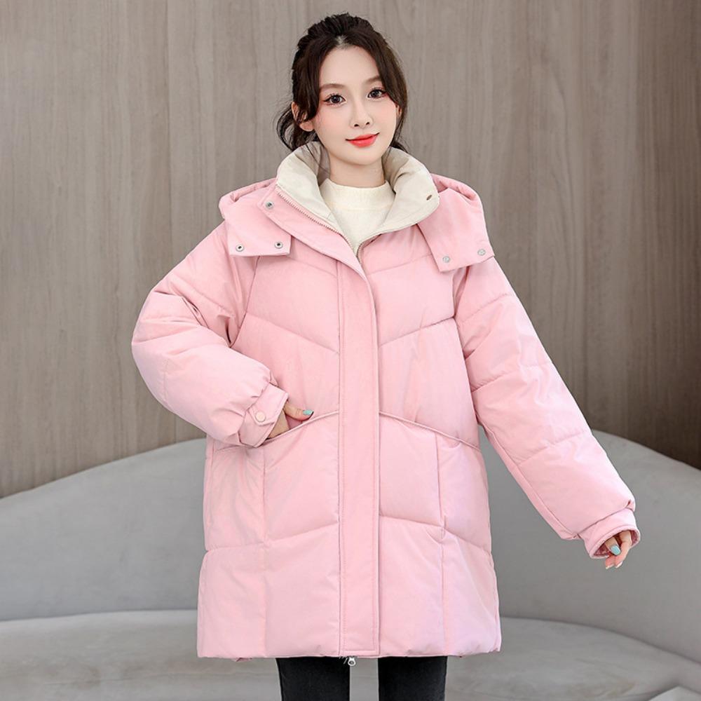 Женская осенне-зимняя одежда из хлопка с капюшоном большого размера, новая, утолщенная, теплая, в виде хлеба, куртки маленькой, средней и длинной длины M розовый