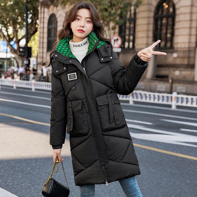 Женская осенне-зимняя однотонная утолщенная верхняя одежда с хлопковой подкладкой, теплая куртка с капюшоном, пальто XL чёрный