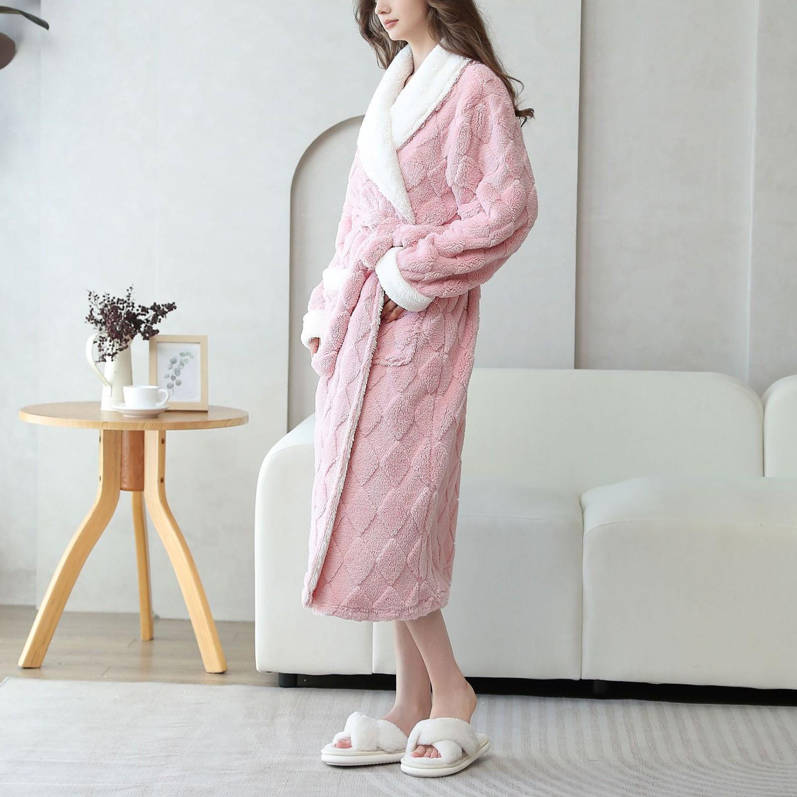 Женская осенне-зимняя парная пижама, удобная ночная рубашка из хлопкового бархата, теплая и удобная домашняя одежда, халат с отворотом XL розовый