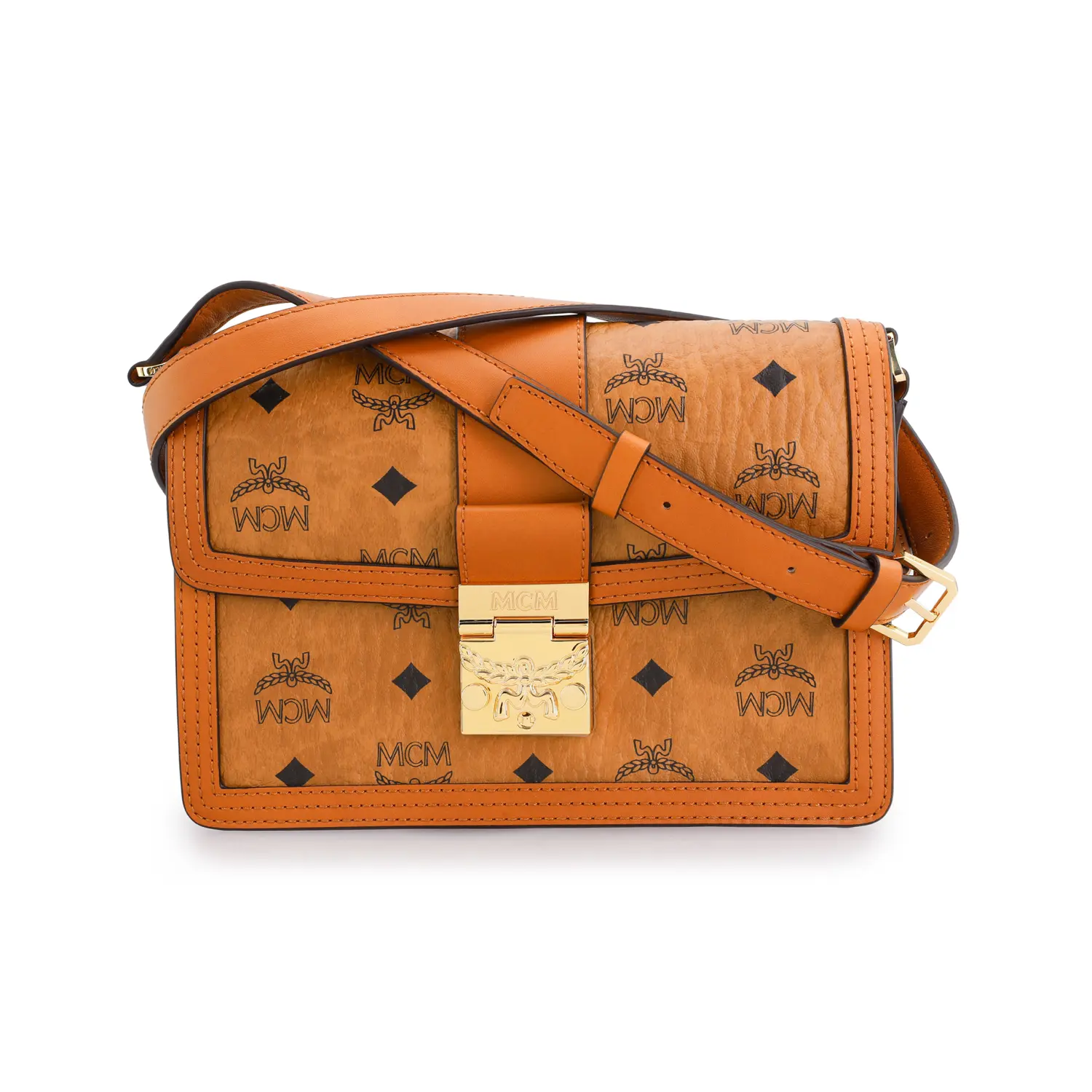 MCM Сумка кросс-боди Tracy Visetos из прорезиненного хлопка с кожаной отделкой малая женская коньяк