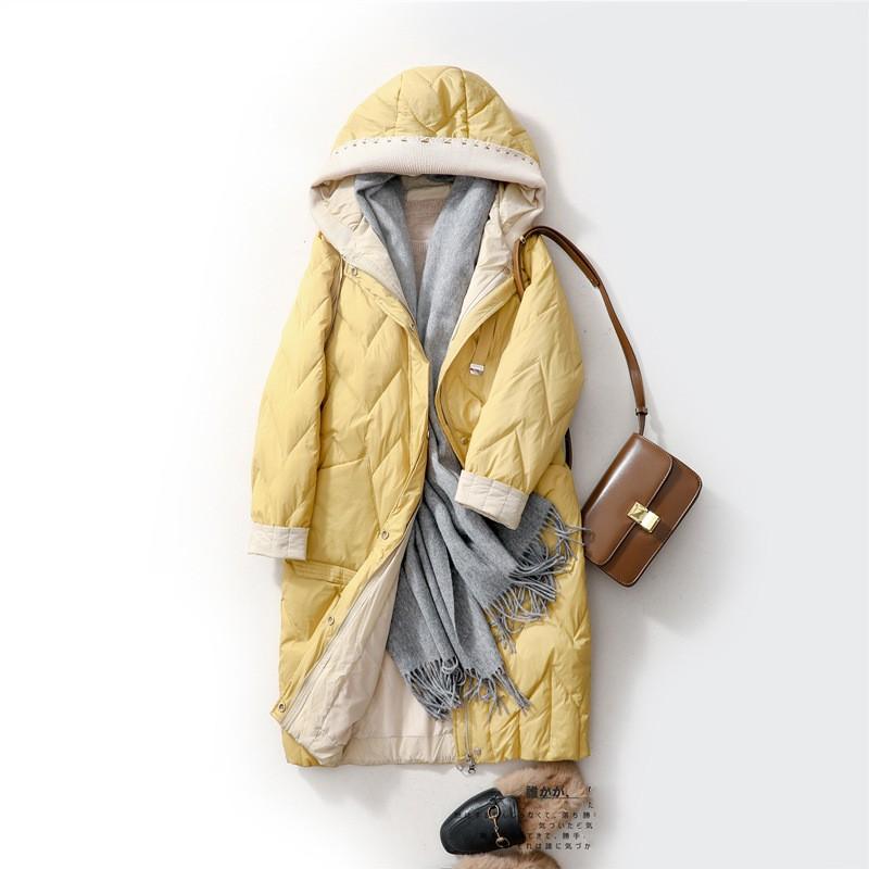 Женская осенне-зимняя повседневная пуховая куртка в корейском стиле средней толщины с капюшоном свободного кроя, вязаная куртка с капюшоном XS жёлтый