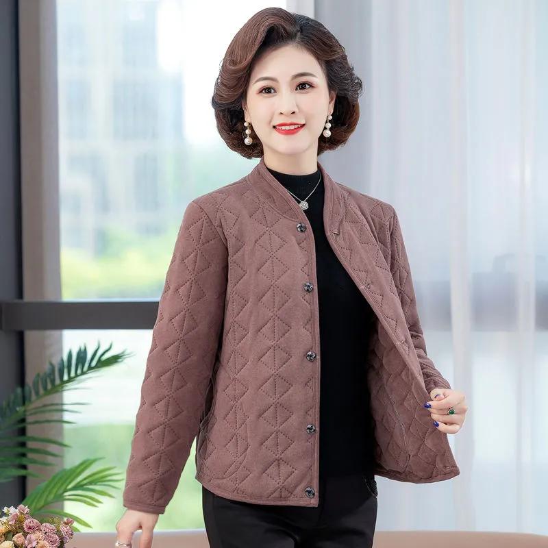 Женская осенне-зимняя приталенная куртка с длинным рукавом, короткая куртка для матери среднего возраста на одной пуговице, однотонная теплая куртка M