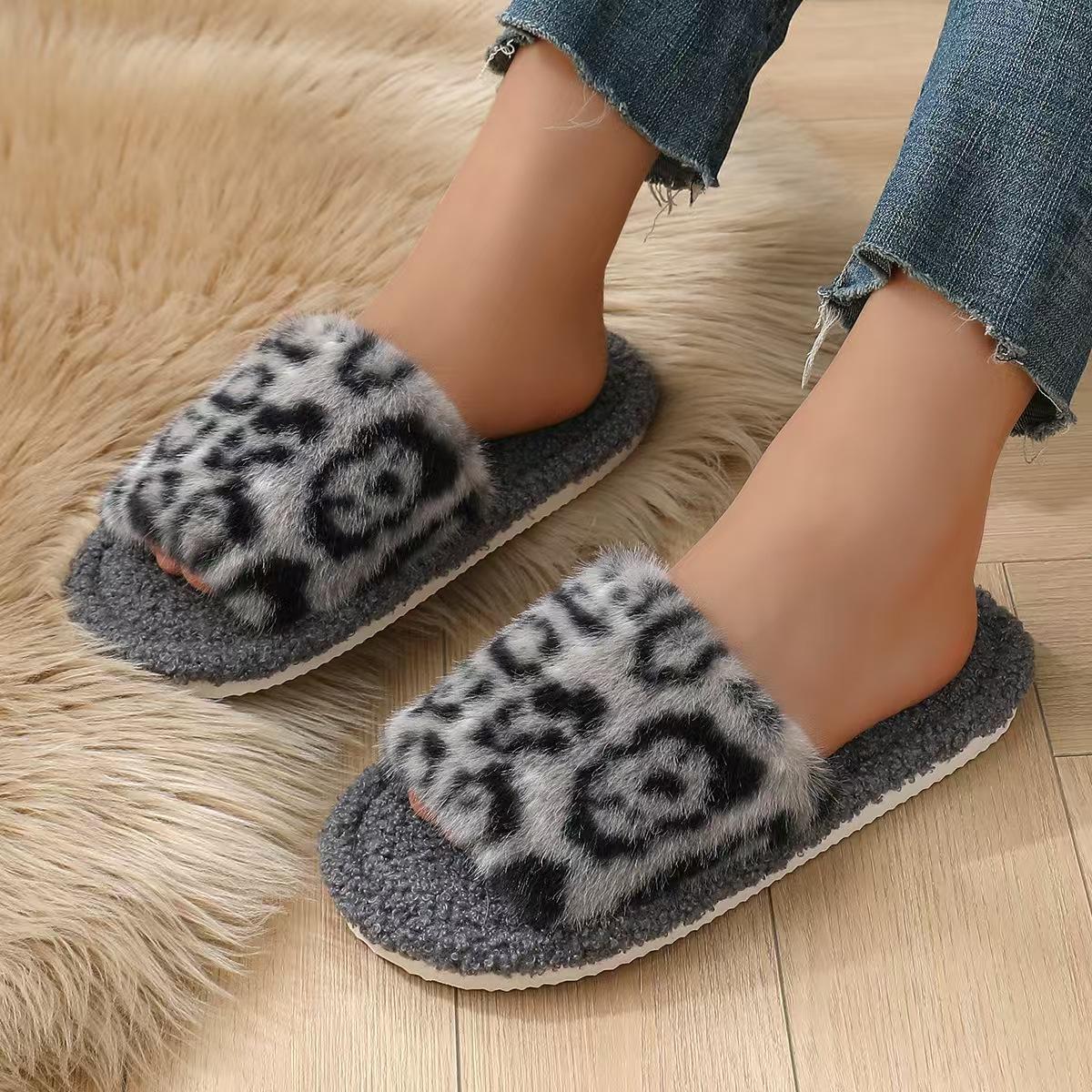 Женская осенне-зимняя теплая обувь с леопардовым принтом, женские тапочки 38-39 серый