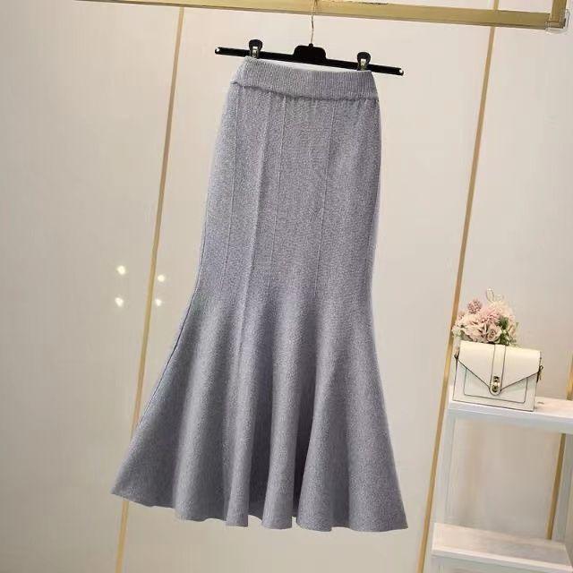 Женская осенне-зимняя элегантная однотонная вязаная миди юбка-карандаш с завышенной талией и силуэтом «русалка» 2XL