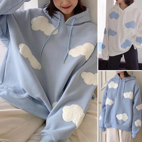 Женская осенняя толстовка с капюшоном, с длинными рукавами и облачным принтом, с мультяшным принтом, согревающая шнурок, свободная плюшевая женская зимняя толстовка с капюшоном, повседневная одежда