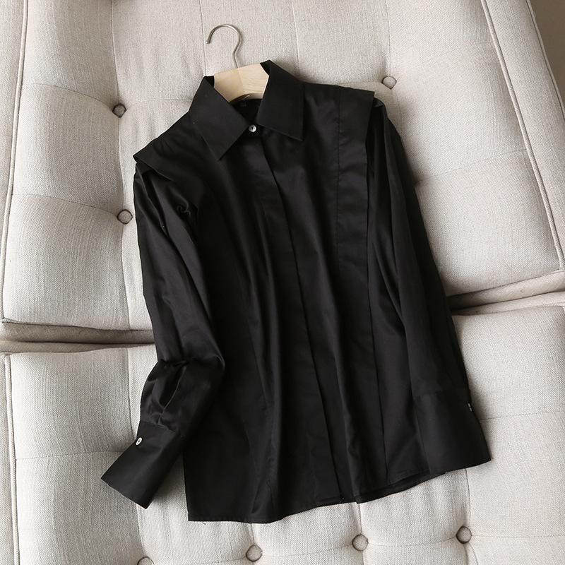 Женская офисная женская элегантная рубашка, топы, черная рубашка высокого качества в стиле ретро, шикарная женская рубашка с длинным рукавом