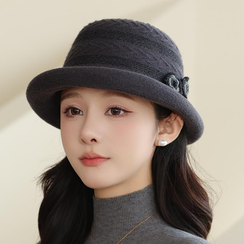 Женская панама на осень и зиму для пожилых, вязаная, теплая, модная, куполообразная, шляпа-ведро, шляпа-цилиндр one size серый