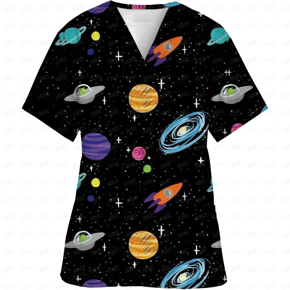 Женская пасхальная униформа медсестры с рисунком из мультфильмов, короткий рукав, V-образный вырез, рабочая эластичная одежда, медицинские халаты, комбинезоны, униформа для сиделок XS
