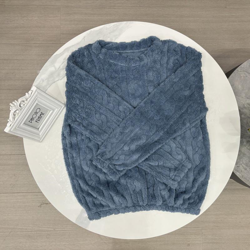 Женская пижама из флиса кораллового цвета с бархатом и размером «плюс» — плотная, теплая, однотонная, с круглым вырезом на осень и зиму Small (recommended for 80-120 jin)