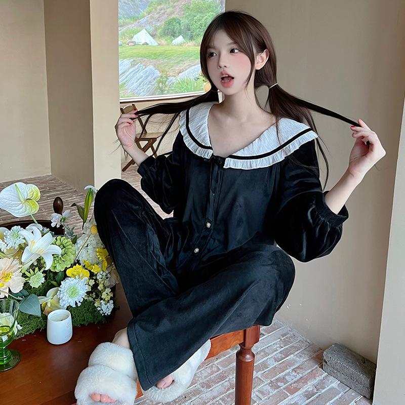 Женская пижама, комплект пижамы, новый китайский стиль, бархатная пижама, брюки, костюм, домашняя одежда, осень-зима, элегантная жаккардовая домашняя одежда XL чёрный