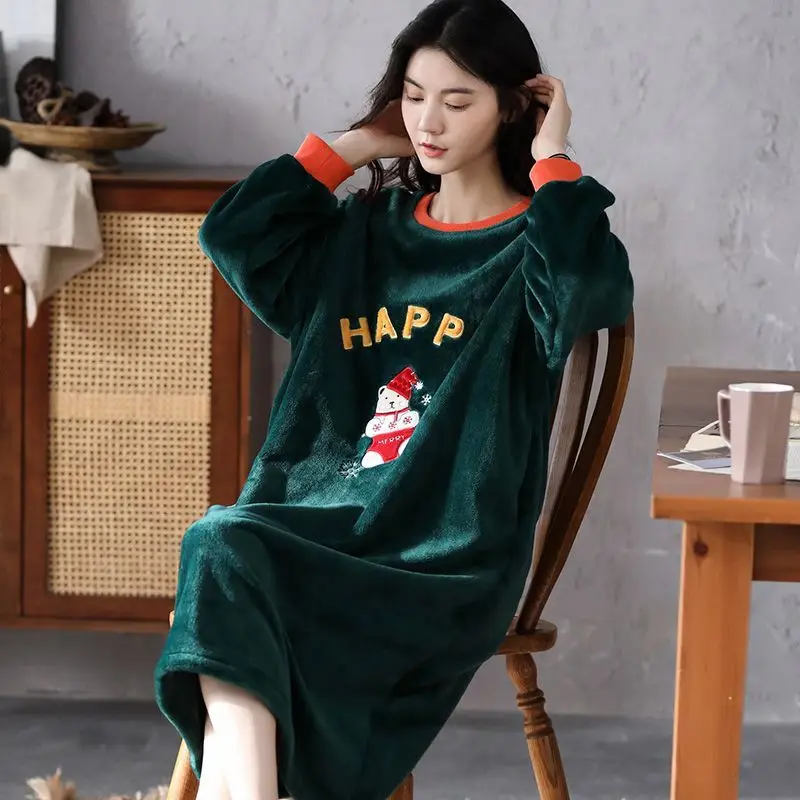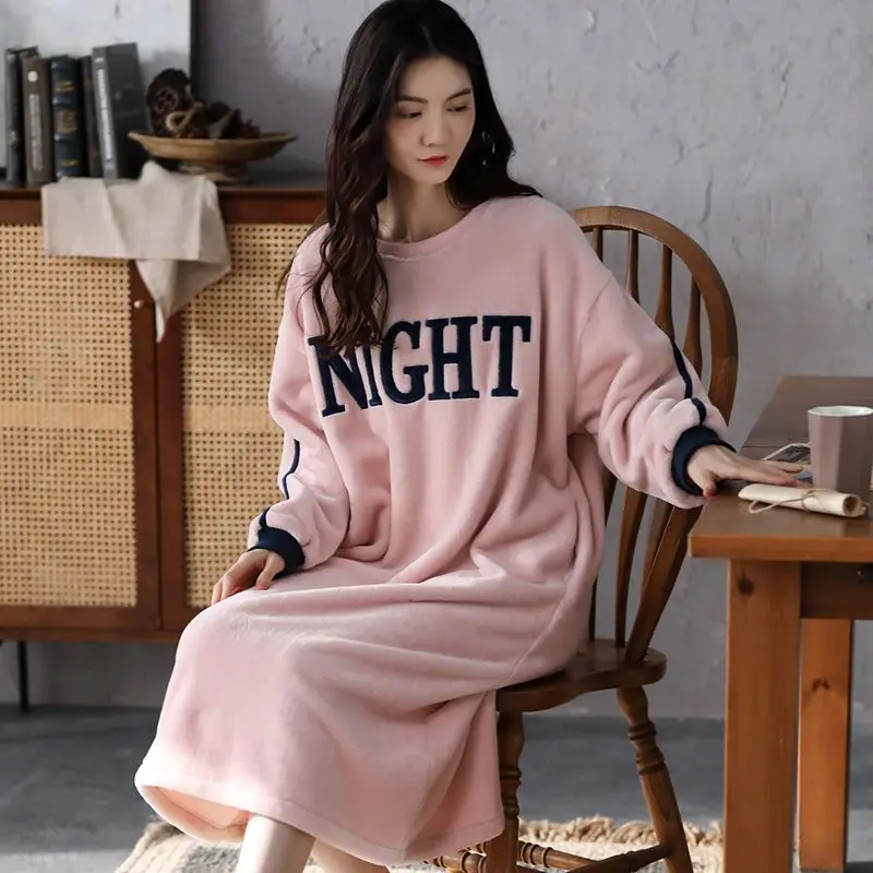 Женская пижама, фланелевая ночная рубашка с длинным рукавом, зимняя плотная теплая Пижама, ночная рубашка большого размера из кораллового флиса, домашняя одежда, платье