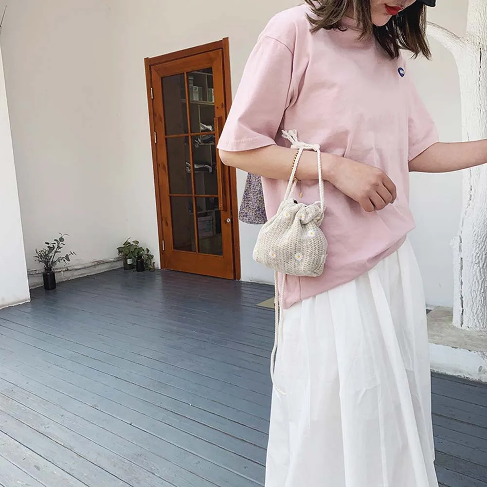 Женская плетеная Сумка-мешок через плечо, летняя пляжная Сетчатая Сумка-тоут с ромашками и цветами