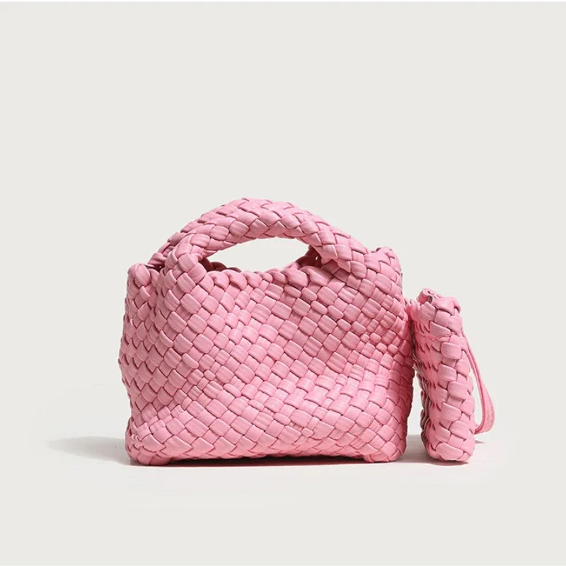 Женская плетеная Сумка через плечо, розовая сумка с ручками, черная, Фиолетовая Сумка-тоут через плечо, летняя дизайнерская сумка-мешок, зеленая сумка ручной работы