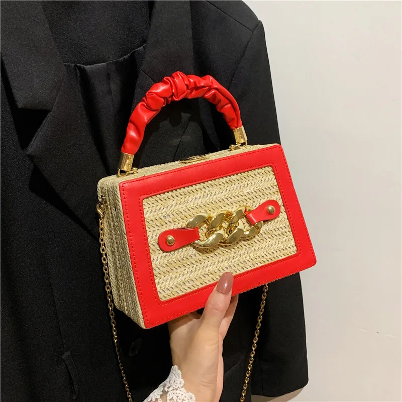 Женская плетеная пляжная соломенная сумка, роскошная дизайнерская пляжная квадратная сумка через плечо из ротанга на ремешке, вечерняя сум...