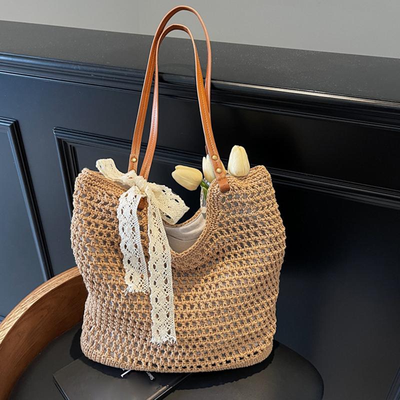 Женская плетеная сумка через плечо из соломы, однотонная, летняя плетеная сумка-мешочек для женщин, ручной работы, дорожные сумки, сумки под мышкой AVE 35*10*32cm хаки