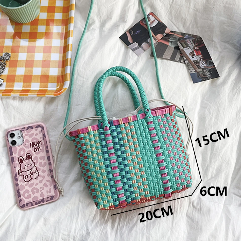 Женская плетеная цветная сумка-мешок ручной работы из ПВХ, модная женская сумка через плечо Joker, маленькая пластиковая плетеная Сумка, лето ...