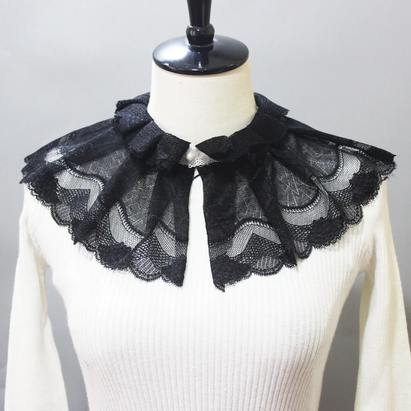 Женская плиссированная большая шаль M2EA в стиле стимпанк с оборками, накладной воротник с волнистым узором, ажурная кружевная накидка с коро...