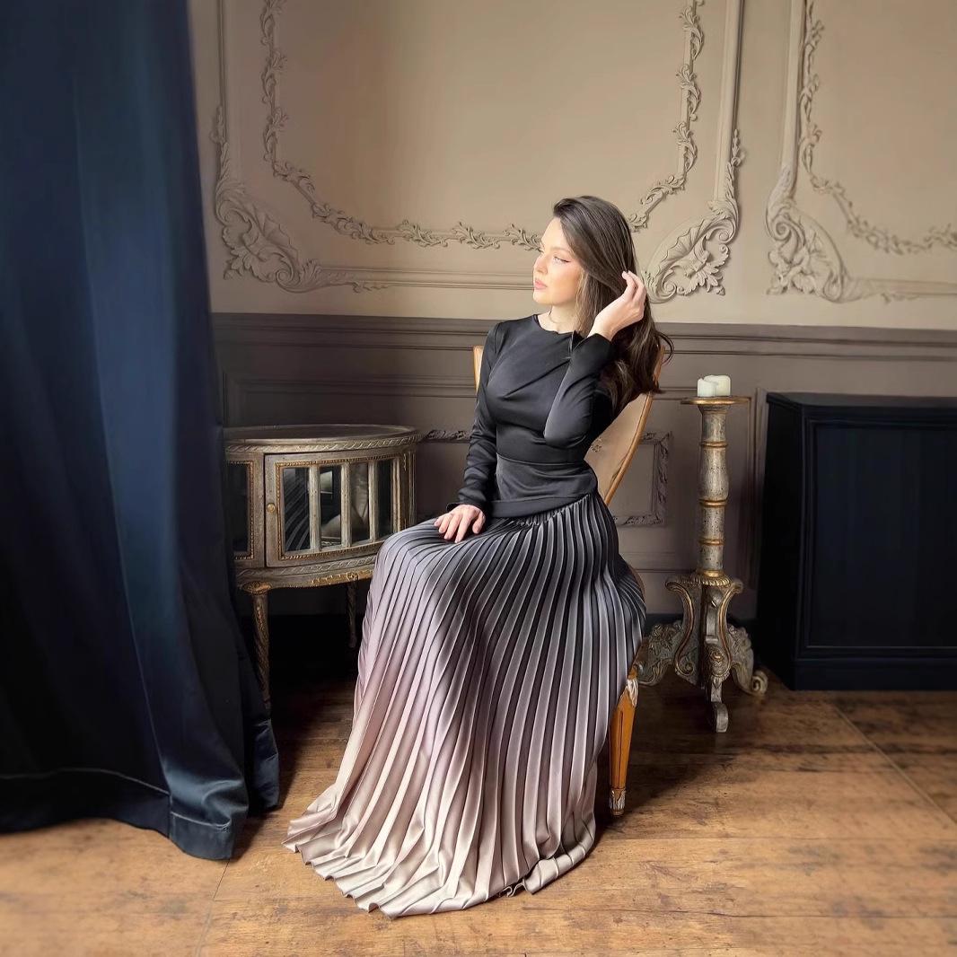 Женская плиссированная миди-юбка из градиентного бархата на осень 2024 года с эластичной талией XXL