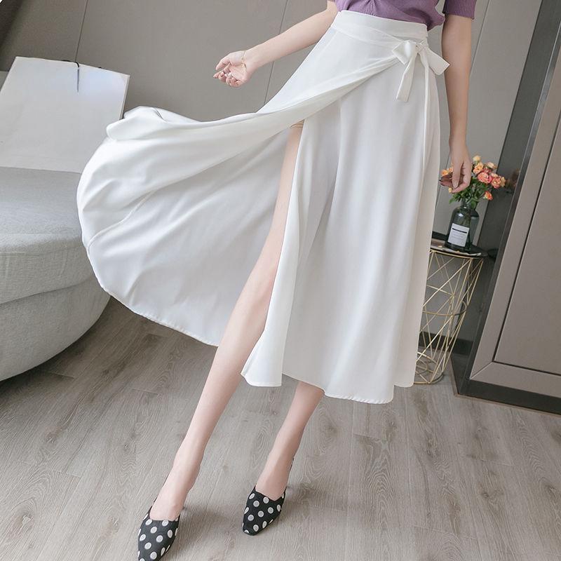 Женская плиссированная юбка, шифоновая цельная ретро-юбка на шнуровке, летняя розовая женская пляжная юбка в корейском стиле с разрезом one size