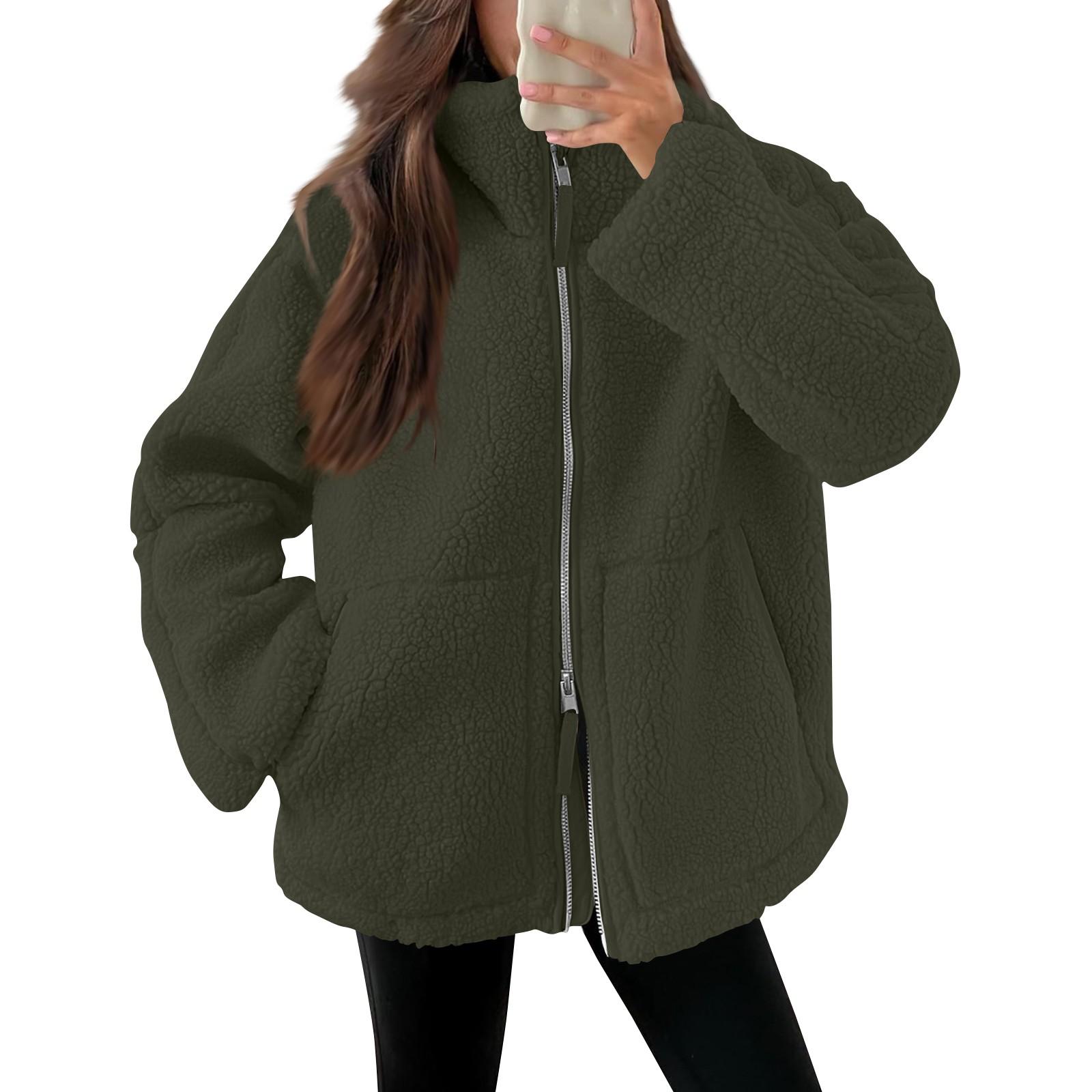 Женская плюшевая куртка, повседневная, с длинным рукавом, большого размера, теплая, с двойной молнией, зимняя, плюшевая куртка L
