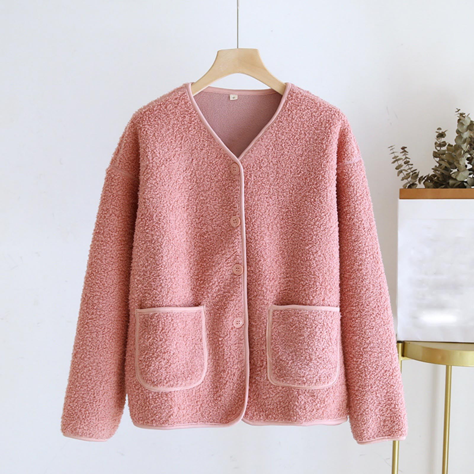 Женская плюшевая куртка с длинными рукавами, теплая зимняя куртка с карманами XL тёмно-синий