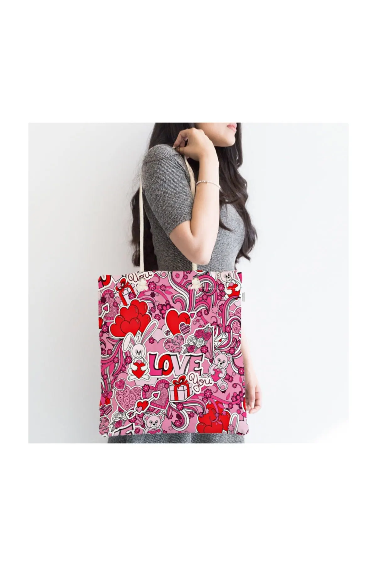 Женская пляжная сумка на розовом фоне с тематикой Love You, Современная тканевая сумка-тоут на молнии, модная летняя большая сумка для покупок ч...