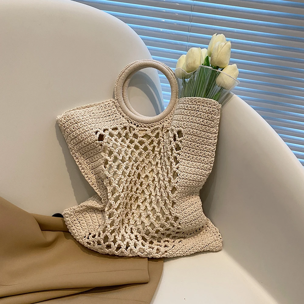 Женская пляжная сумка, очень большая плетеная Сумка через плечо, однотонная сумка для девушек, повседневная сумка-тоут с вырезами, сумка-шоппер с ручкой
