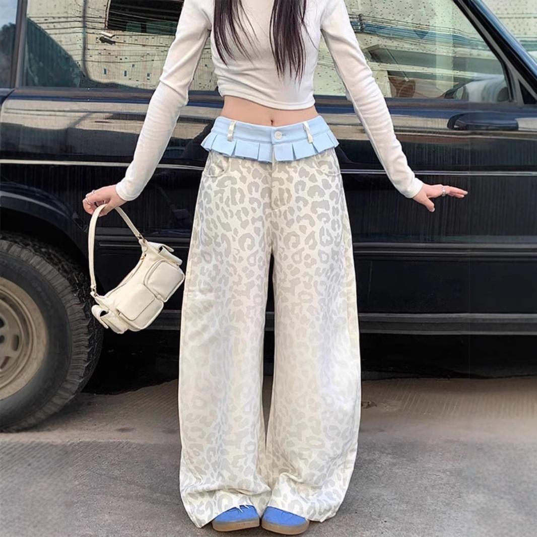 Женская повседневная модная юбка с принтом леопарда и вареным эффектом, с джинсовыми прямыми брюками в технике пэчворк M
