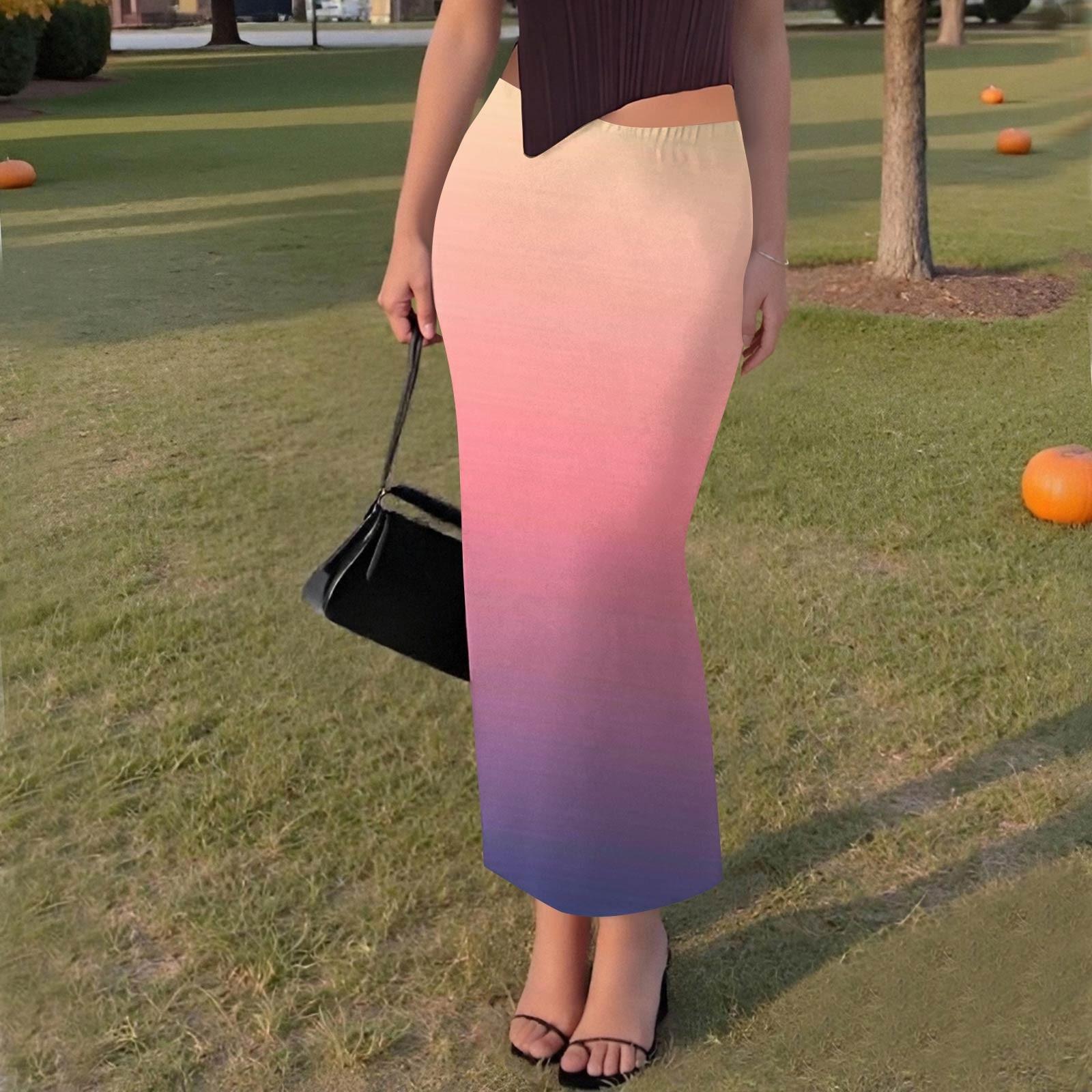 Женская повседневная модная юбка с разрезом «рыбий хвост» с градиентным принтом, эластичная узкая юбка до середины тела M розовый